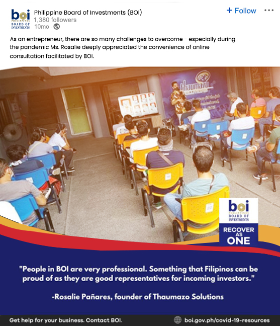 Board of Investment (BOI), an attached agency of the Department of Trade and Industry (DTI), helps and leads businesses in the Philippines to developing industries and make doing business easier. As TEXTS aims to expand, embodying the Mission and Vision, knowing more of and about BOI is of great contribution.